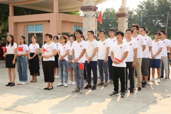 伴隨著莊嚴的國歌,五星紅旗冉冉升起,迎風飄揚,全體人員懷著激動的心情,向國旗行注目禮,心懷對祖國無限的熱愛和崇高的敬意。回首新中國70年的艱辛探索,歷數70 年的輝煌成就,中國70年的強國征程波瀾壯闊,70年的滄桑巨變舉世矚目。中華民族從未像今天這樣,以站起來、富起來、強起來的英姿贏得了世界的尊敬,中國人民從未像今天這樣意氣奮發,精神振奮,對國家和民族充滿信心。