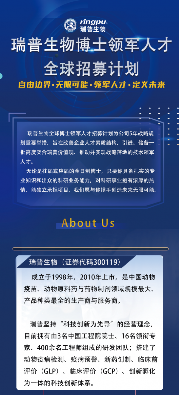 官宣第二彈 | 瑞普生物博士領軍人才全球招募計劃