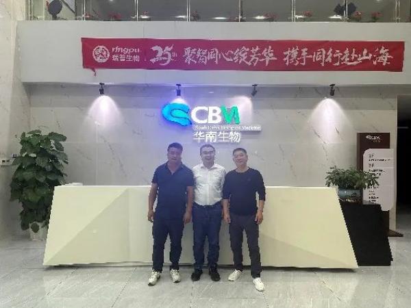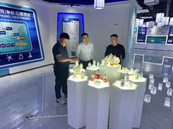 春茂集團羅總、鳳翔集團梁科長、瑞金祥瑞賈總和楊總在華南生物營銷中心總經理徐兆強的陪同下參觀了華南生物展廳,徐總對華南生物的發展歷程和企業文化進行了詳細的講解,對華南生物未來的發展規劃及研發方向與羅總一行進行詳細介紹。
