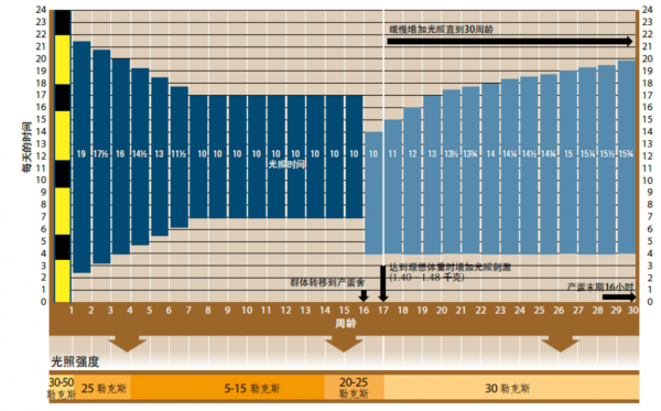 每個蛋雞育種公司一般都會提供相應品種的光照管理方案,蛋雞養殖企業及個體在遵循相應管理方案的同時,也可根據實際情況做出適當調整。