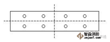 3.對于條形風口見圖6-4所示,在高度方向上,至少安排兩個測點,沿其長度方向上,可取4-6個測點;對于圓形風罩,見圖6-5所示,并至少取5個測點,測點間距≤200mm。