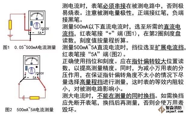測電流時,儀表應(yīng)串聯(lián)在被測電路中;測電壓時,儀表應(yīng)并聯(lián)在被測電路兩端。