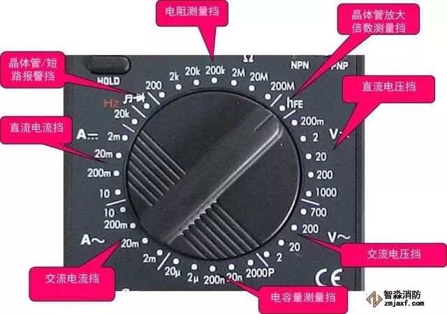 轉(zhuǎn)換開關(guān):選擇被測電量的種類和量程(或倍率)。